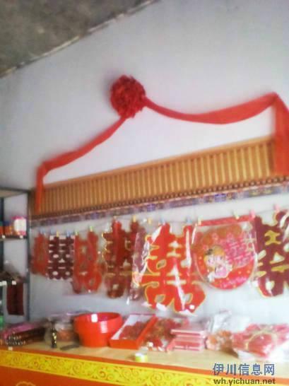 本人是开婚品专卖店的,经营有大红灯笼、喜字、车贴、车号牌、婚房拉花、木梳、蓖子、脸盆、香皂、镜子、手捧花等等,凡在本店购买全套婚品者,均可免费使用红地毯、铜镜、宝瓶壶、斗、秤、尺、柱等结婚用具,你不必再为结婚用具东筹西借。